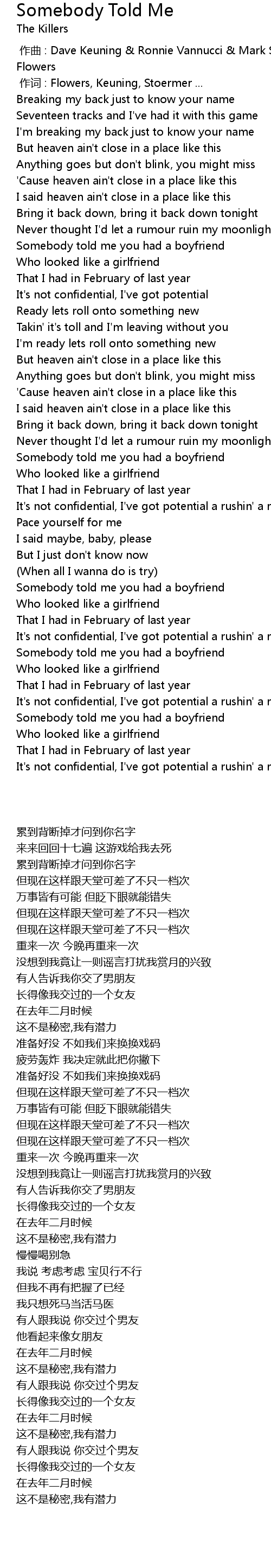 The Best 26 The Killers Somebody Told Me Lyrics